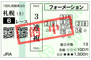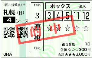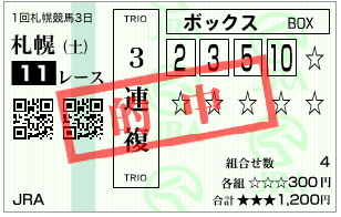 あまりにも目立っていたので頭に加えてみたアナログ馬券。