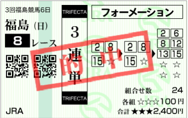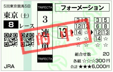 3連単まで的中でギリギリ払い戻し100,000円程になり