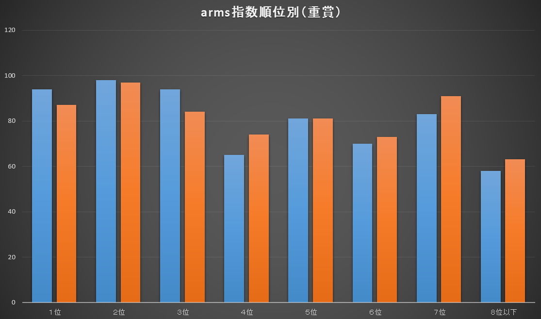 arms指数を重賞で見ると明らかに上位を買うべきであるという成績になります。