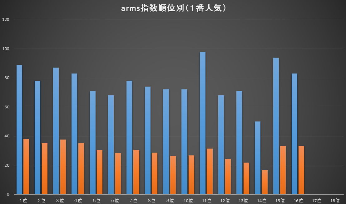 なのでarms指数上位で1番人気の馬がいるなら堅い、そうでないなら穴が狙いやすいなどと見分けることができます。